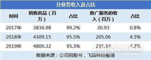 其次,再看推广服务业务。推广服务的收入即公司通过内部销售及营销团队为部分其他制药商提供推广服务所产生的收入。这块业务占公司营业收入比重较小,近两年约为4.5%左右。