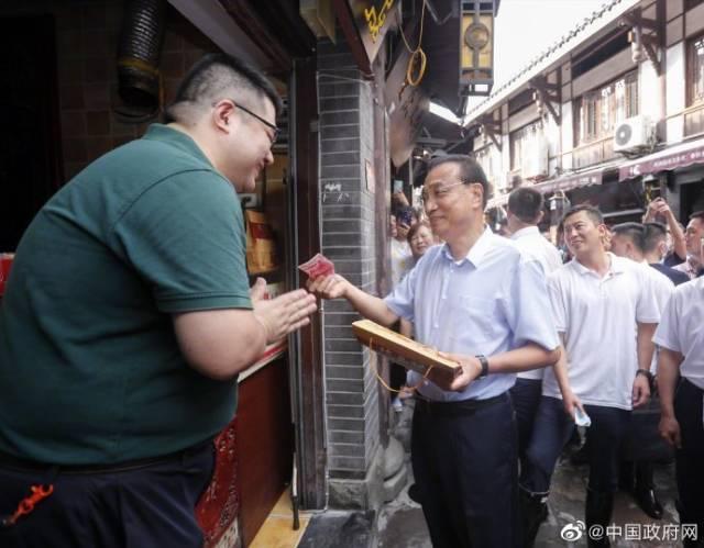 李克强来到重庆磁器口,临时拐进一家麻花店买了三袋麻花