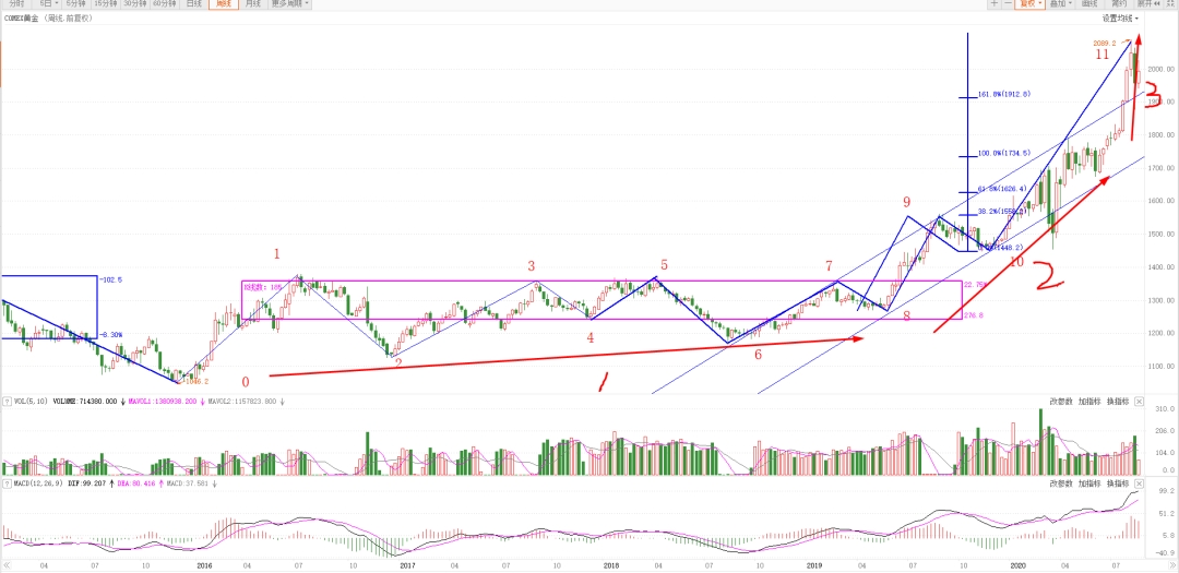 虽然现在这一切还都是我们的假设,不过从汇率角度,从疫苗即将面世的角度,从黄金走势结构的角度看,黄金周线级别调整到来的概率很高。