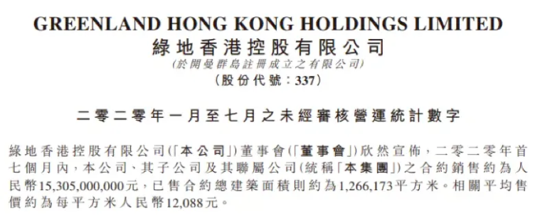 而从7月成绩上看,绿地香港尚未表现出扭亏为盈的局面。