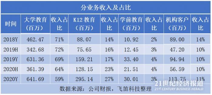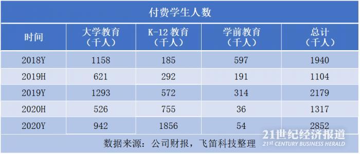 大学教育的付费人数同比下降27.1%至94.2万人,公司解释付费人数下降的原因是2020财年对若干产品的调整和提升以及2020财年下半年部分国内和国外考试延后或取消所致。