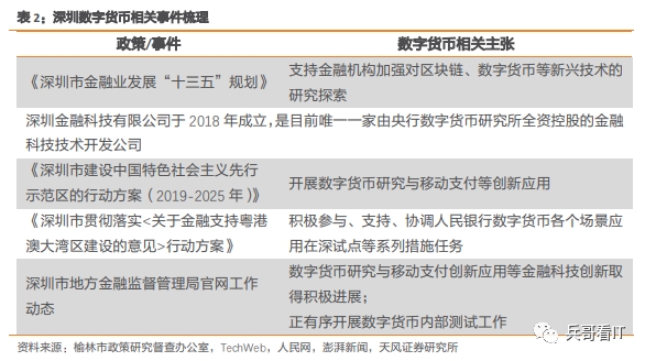 深圳作为四个数字货币试点城市之一,近期动作频频。西南财经大学金融学院数字经济研究中心主任陈文表示:在产品应用方面,深圳可能相对其他试点城市会走得更进一步,可以预期深圳会有更多的政策支持去推动数字货币场景应用。清华大学五道口金融学院副院长张晓燕表示:深圳可以结合粤港澳大湾区建设战略,研究央行数字货币在跨境支付等领域的应用。我们认为,深圳作为数字货币试点城市之一,研究开发工作起步早、发展快,既有顶层政策支持、也有较好的科技产业及年轻用户基础,对其试点动态应予以重点关注。