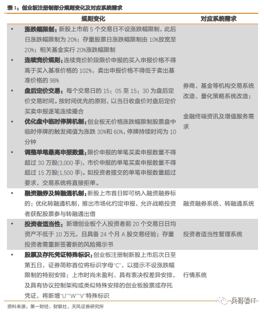 1)交易规则变化提升机构信息化建设及个人增值服务需求。创业板改革并试点注册制在涨跌幅限制、转融通机制、投资者适当性等交易规则方面发生变化,To B端将迎来机构IT系统改造需求,To C端将促进投资者活跃度及终端增值服务需求。未来随着注册制向全市场推进,B端系统改造及C端增值服务需求有望进一步提升。