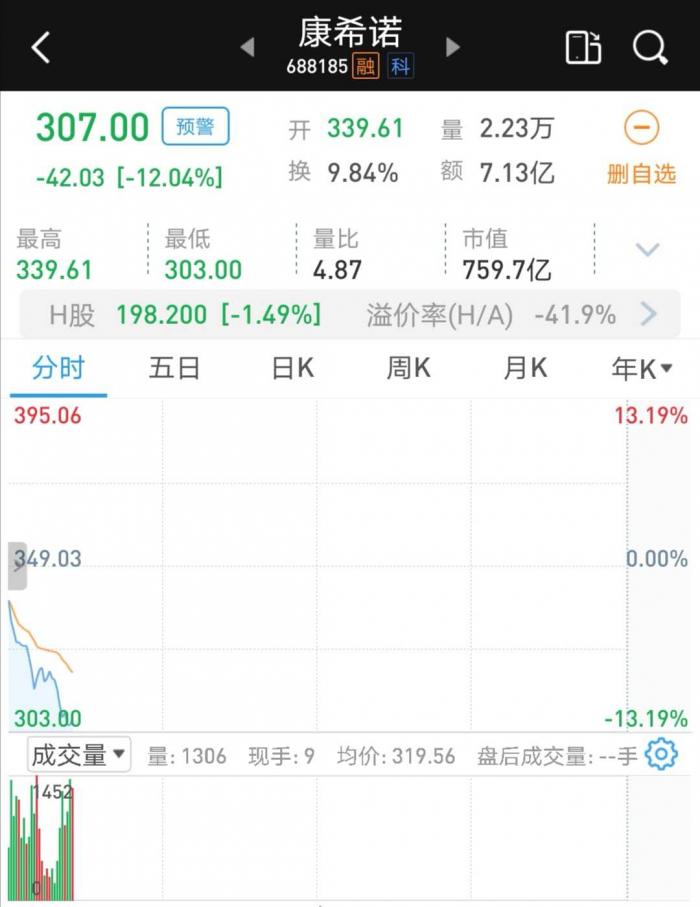 截至21世纪经济报道记者发稿时,康希诺大跌12.04%。