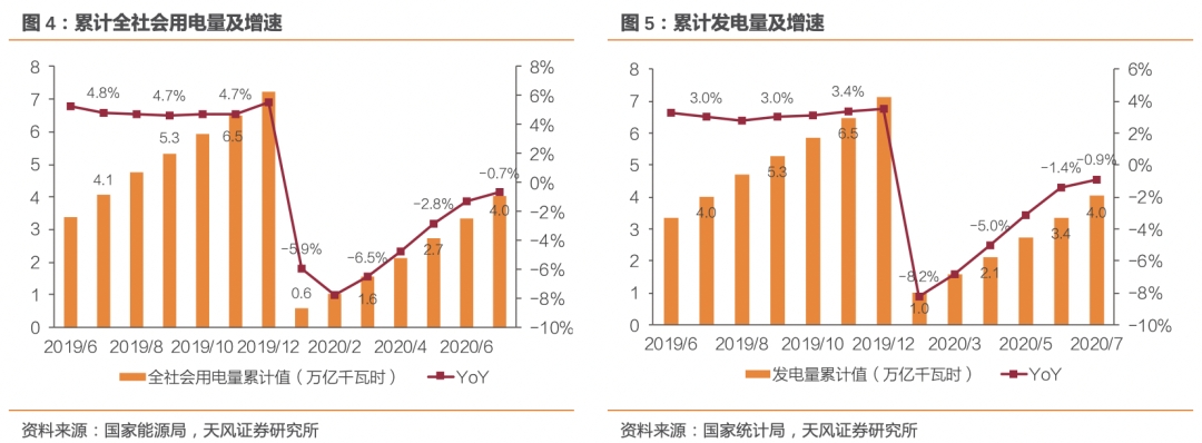 复苏主线叠加高温影响,需求持续向好。2月以来,在疫情影响弱化、产业持续复苏背景下,用电量以及发电量累计增速已分别累计修复7.1及7.3个百分点。此外,今年高温天气导致多地负荷持续创历史新高,入夏以来,国家电网经营区域内已有1个区域电网和11个省级电网负荷创新高;南方电网经营区域内广东、广西、云南、海南等区域也迎来负荷新高。产业复苏以及高温的双重拉动下,电力需求增长动能稳固。
