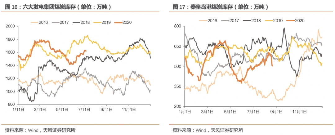 库存方面,截至7月6日,沿海六大发电集团煤炭库存总量为1621.40万吨,较去年同期变化-213.71万吨;截至8月21日,秦皇岛港煤炭库存总量为502.5万吨,较去年同期变化-130.5万吨。
