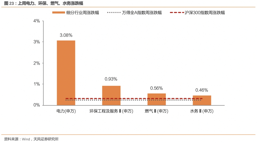 主要火电标的业绩明显超预期。本周火电行业主要标的陆续披露中报,整体来看业绩表现十分亮眼。具体来看,华电国际上半年归母净利润同比高增43%,建投能源上半年归母净利同比增长29%。此外,从业绩预告数据来看,深圳能源、大唐发电、京能电力、粤电力等主要火电标的业绩均有高增,上半年行业业绩表现整体超预期。