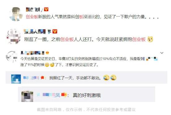 创业板今日表现,也让各路小伙伴很嗨,很多人表示“见证了历史”、“眼红”、“激动”。