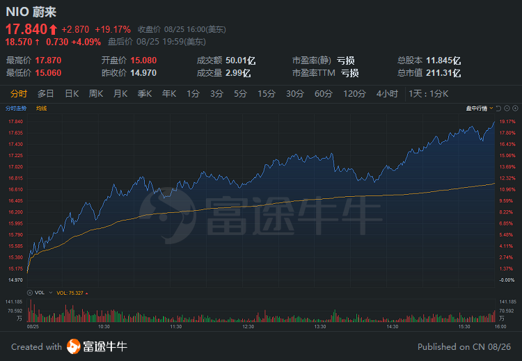 消息面上,瑞银将蔚来评级从「卖出」上调至「中性」,给予目标价16.30美元。该行分析师Paul Gong指出,随着公司第二季度财报和第三季度指引显示出汽车销量和利润率复苏,蔚来的基本面也有所改善。