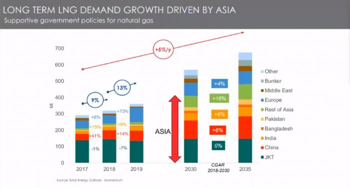 博宏指出,从2010年初开始,液化天然气的需求一直呈现增长态势,目前的年增长率是大约5%,预期到2035年之前将一直保持这样的增速,但不同的地理位置会有所不同。