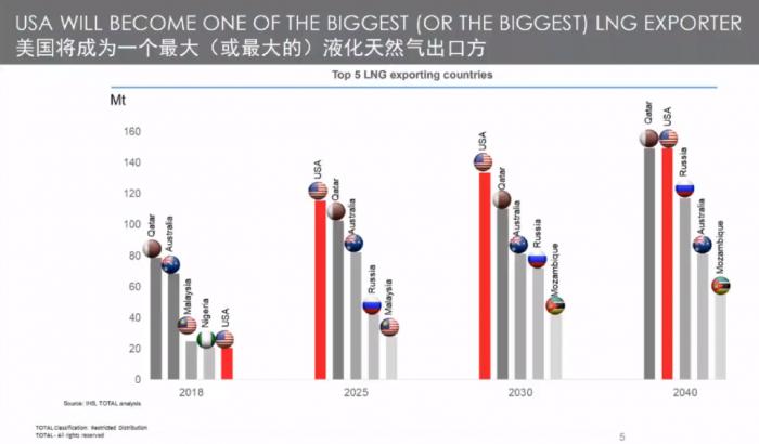 博宏介绍道,在全球方位来看,现有的主要天然气项目位于卡塔尔、澳大利亚和美国,前两个国家是传统的天然气生产国,第三个国家是新兴的生产国。值得注意的是,液化天然气市场的变化是非常快的,比如,2018年,前五大出口国分别是卡塔尔、澳大利亚、马来西亚、尼日利亚和美国,但五六年之后,美国成为了最大的生产国,卡塔尔、澳大利亚、俄罗斯、马来西亚紧随其后。