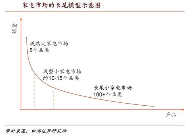 如今的小家电市场无疑是一片新的蓝海,厨卫小家电、生活小家电和个人护理小家电这三大类衍生出数不清的细分品类。据深港证券研究所数据显示,成熟小家电市场有10-15个品类,而长尾小家电更是多达一百多个品类。