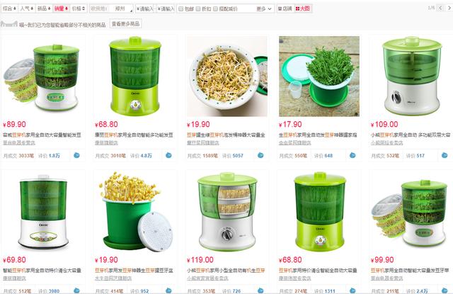 比如吸尘器,虽然尚未实现普及,但是准目标用户无须进行过多教育,大家都知道它是干什么的。但有的却不同,比如说豆芽机,它是干嘛用的?吃豆芽还需要机器?或许不少人都会有这样的疑问。这种认知上的差距同样体现在这两款产品的销量上,在淘宝上分别搜索并按销量排序,两种产品的差别显而易见。