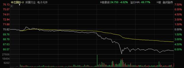 中芯国际于今年7月16日上市,发行价为27.46元/股。上市第一天,中芯国际的股价最高涨至95元,之后震荡走低。截至到今日,中芯国际股价回调幅度近30.25%。