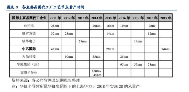 但要注意的是,中芯国际与其它芯片巨头在技术上有较大差距。公开数据显示,中芯国际14纳米制程的量产时间在2019年,而台积电早在2015年、2016年及2018年实现了16纳米、10纳米及7纳米制程的量产。