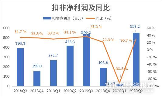 从上图可以看到,分季度看,一季度公司收入异常下滑26.86%,但是二季度已经恢复到正增长,这一变化跟一季度疫情严峻,二季度国内经济逐步恢复的形势匹配。