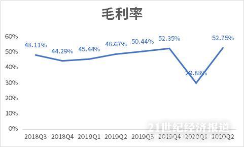 从毛利率看,一季度公司的毛利率一度下降到不到30%,但是到二季度已经恢复到了52.75%,毛利率创出了2018年一季度以来的新高。