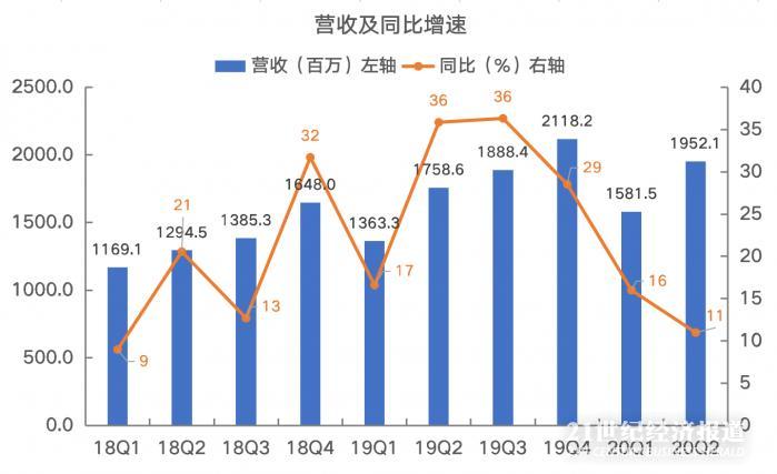 从上图可以看到公司今年一季度收入同比增速为16%,二季度进一步放缓到11%。