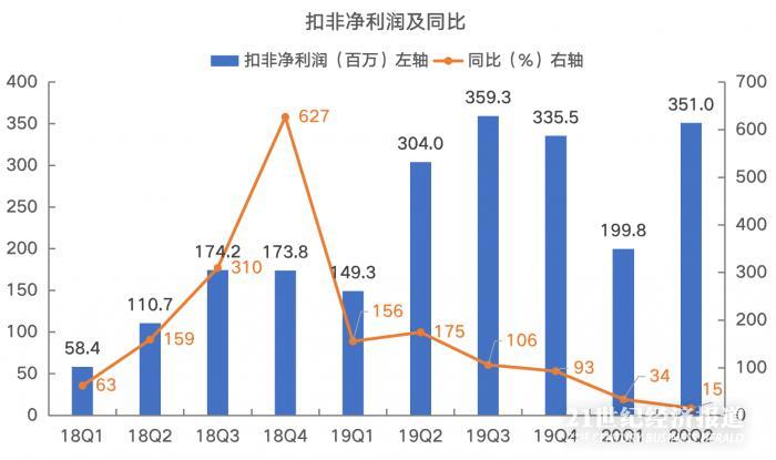 收入放缓,也直接导致了公司利润增速的放缓。上图是公司的季度扣非净利润和同比增速,从中可以看到,二季度公司的扣非净利润增速已经创了2018年以来的新低。