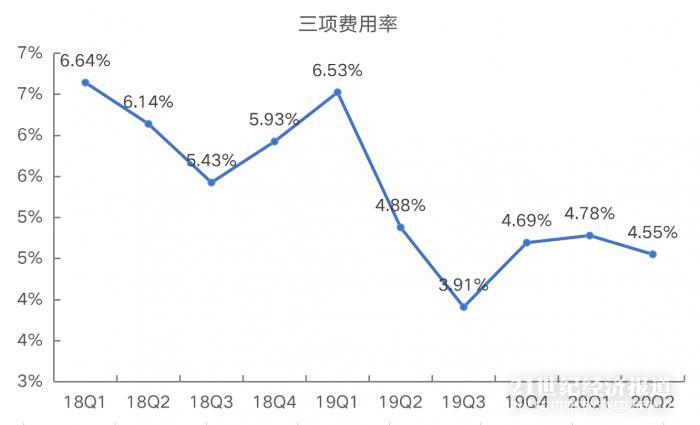 上图是公司的销售、管理和财务三项费用加总的费用率。从上图可以看到,公司的费用率是逐步下降的,反映公司在收入增长的同时,费用管控能力优秀。