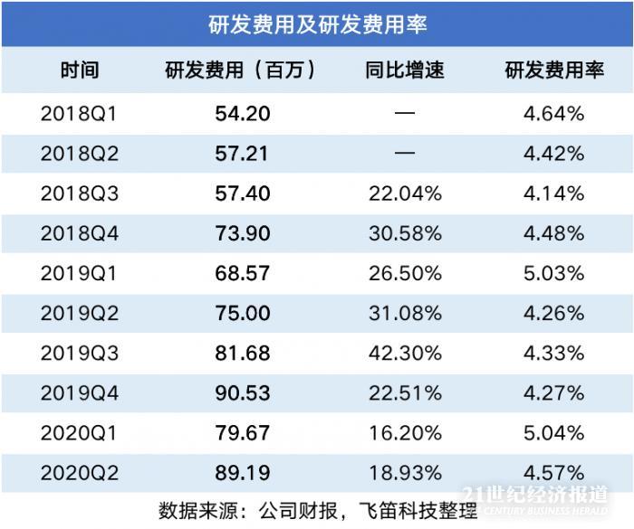 上图是公司的研发费用支出占总收入的比例,从中可以看到,公司的研发费用率保持在一个相对稳定的水平。