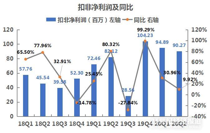 今年一季度,公司收入虽然出现萎缩,但是因为营业成本异常下降(公司没有给出说明,猜测跟疫情停工有关,二季度已经恢复正常水平),扣非净利润增长了31%。二季度扣非净利润增速跌回到个位数,跟收入增速水平接近。