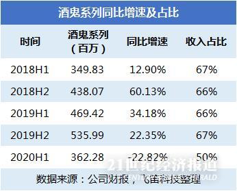 酒鬼系列是公司主打中端市场的白酒品牌,也是公司主要的收入来源,从上图可以看到,酒鬼系列酒上半年收入萎缩了22.82%,收入占比也下降到了50%。