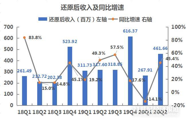 上图是公司经还原后的收入及收入增速,从中可以看到,公司一季度营业收入还原后是下降了14%,下降幅度比财报显示的要大,但是二季度收入还原后增长了45.36%,是2018年以来较高的水平。
