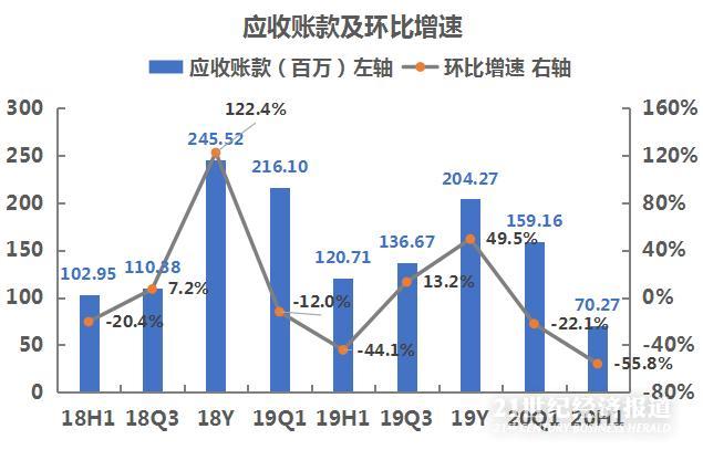 在公司预收账款大增的同时,公司的应收账款是明显下降的。上图是各季度财报显示的公司应收账款,今年一季度环比减少了22%,二季度继续环比减少56%。至2020年6月底,公司的应收账款降至只有7027万元,创新低。应收账款的下降,说明公司对渠道议价能力的提升。