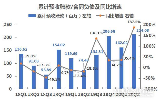 上图是公司的预收账款(今年开始会计科目口径改为“合同负债”),从中可以看到,公司的预收账款二季度环比大增超5000万创出新高,同比2019年同期大增188%。