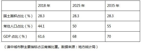 《规划》提出,到2025年,滇中城市群要聚集云南省50%的人口和68%的地区生产总值,2035年聚集云南省55%的人口和70%以上的地区生产总值。