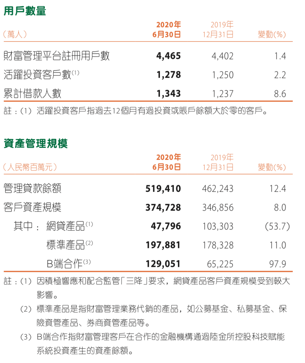 聚焦到陆金所控股,截至2020年6月30日,陆金所控股管理贷款余额较年初增长12.4%至5194.1亿元;在线理财业务实现稳定增长,客户资产规模较年初增长8.0%至3747.28亿元。