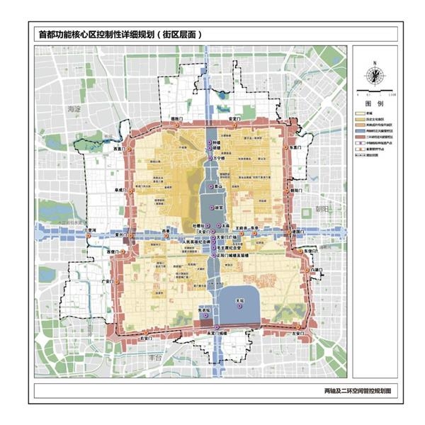 “两轴、一城、一环”:两轴即长安街和中轴线,一城即北京老城,一环即沿二环路的文化景观环线。