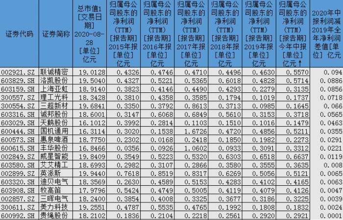 据统计,截至8月28日,在剔除ST板块及个别年份出现亏损的公司后,A股市场仍然有67家上市公司当前市值低于20亿元,同时净利润连续5年为正。