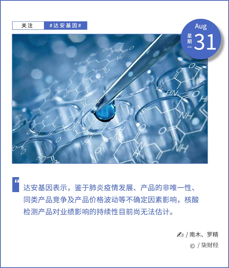 对于此,达安基因表示,鉴于肺炎疫情发展、产品的非唯一性、同类产品竞争及产品价格波动等不确定因素影响,核酸检测产品对公司业绩影响的持续性目前尚无法估计。