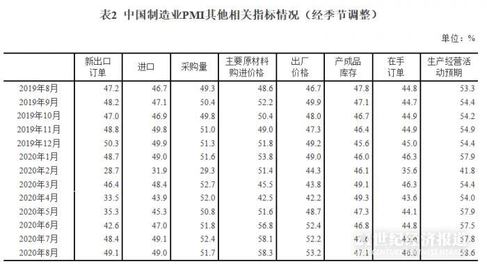 需求的回升也带动了价格的上涨。8月主要原材料购进价格指数和出厂价格指数为58.3%和53.2%,分别高于上月0.2和1.0个百分点。企业对后市预期较为乐观,生产经营活动预期指数较上月上升0.8个百分点至58.6%,为2019年以来最高水平。