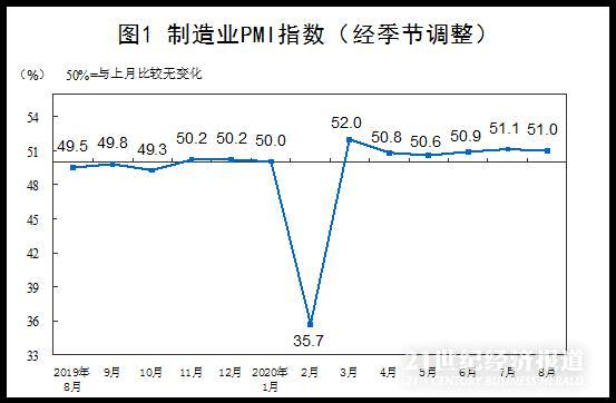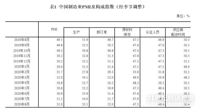 8月份,中国制造业采购经理指数(PMI)为51.0%,比上月略降0.1个百分点。其中,生产指数为53.5%,比上月下降0.5个百分点,而新订单指数为52.0%,高于上月0.3个百分点,连续4个月回升。