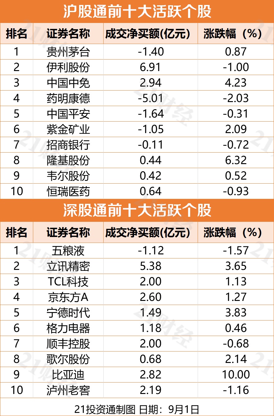 从个股来看,北向资金最青睐的3只股票分别是伊利股份(600887)、立讯精密(002475)、中国中免(601888),分别获净买入6.91亿元、5.38亿元、2.94亿元;药明康德(603259)、中国平安(601318)分别遭净卖出5.01亿元、1.64亿元。