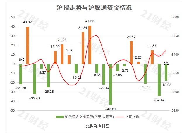 北向资金继昨日后再次上演“过山车”,早盘一度净流入近20亿元,尾盘再度回落,全天小幅净流出3亿元,连续两日净卖出。其中沪股通净卖出超18亿元,深股通净买入超15亿元。