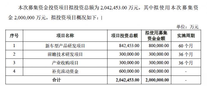 最新的招股书进一步披露,吉利汽车募资投资项目拟投资总额204.2亿元,其中拟使用IPO募集资金200亿元,投入新车型产品研发项目(使用募资80亿元)、前瞻技术研发项目(使用募资30亿元)、产业收购项目(使用募资30亿元)、补充流动资金(使用募资60亿元)等四大方面。