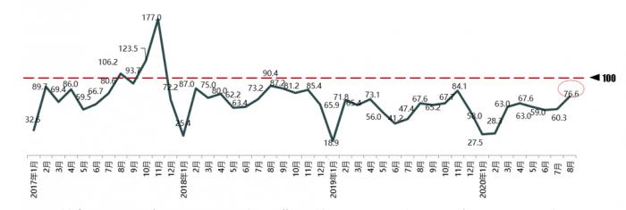 协会调查数据显示,今年 8月汽车消费指数为76.6,较上月有所上升。协会分析,9月汽车市场将进入旺季,叠加车展、新车上市、政策等因素,汽车销量预计增长较多。