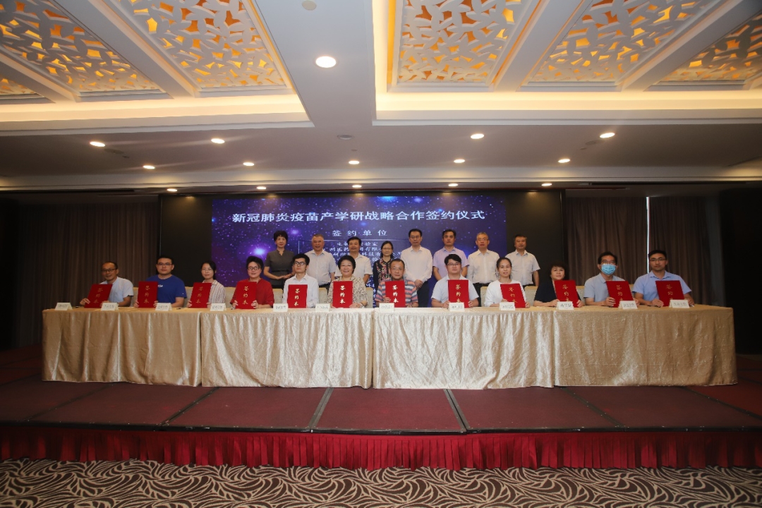 为了积极应对新冠疫情,集中优势力量,专注技术攻关,加快疫苗研发生产,8月31日,由生物岛实验室徐涛院士发起,广药集团牵头,广州市生物产业联盟组织推动生物岛实验室、广药集团、广州呼研所医药科技有限公司、广州诺诚生物制品股份有限公司等12家单位达成新冠肺炎疫苗产学研战略合作。