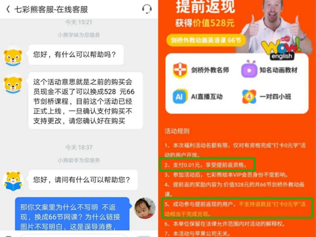 前有明兮大语文、七点十分早教直接倒闭,后有七彩熊英语绘本篡改游戏规则,想方设法拒不退款……过去几个月,“打卡0元学”的多米诺骨牌效应持续蔓延,几乎都卡在返现问题上,引发全国大面积家长维权潮。