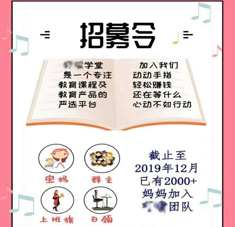 本着“鸡蛋不要放到同个篮子里”的原则,课程方会多投几家平台。为增加竞争力,推课平台们纷纷招募起了“推广员”,推广员们负责发布广告,拉人进群及解答问题,客户购买课程后,平台会付给推广员提成。