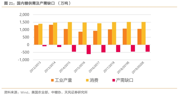 2、 政策风险。食糖贸易保障措施于2020年5月到期,配额外原糖进口关税由85%降至50%,关税配额外食糖开始实行进口报告管理制度,市场竞争进一步加剧。