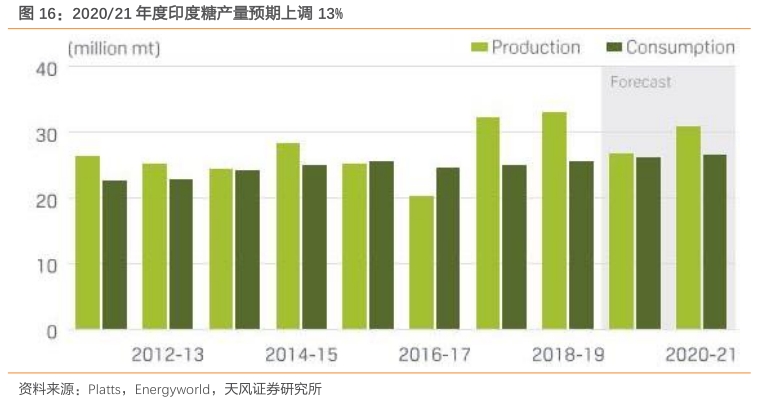 未来两年,三大产糖国中,印度和泰国糖供应量下降可能性高,巴西糖产量能否兑现仍要看新榨季糖醇生产结构: