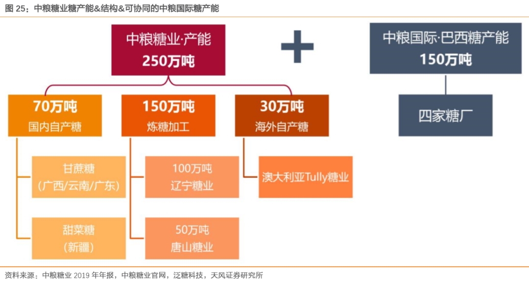 公司在国内外拥有合计250万吨的食糖产能,并可与中粮国际的150万吨产能形成协同效应: