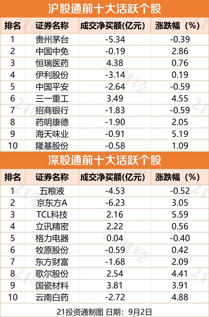 北向资金连续3日净卖出,加上此前8月31日、9月1日的净卖出额80.26亿元,3亿元,合计149.4亿元。