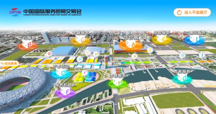 在“展”的方面,云上服贸会通过平面+3D虚拟单体展台结合,提供看得见的智能体验,突破空间限制。