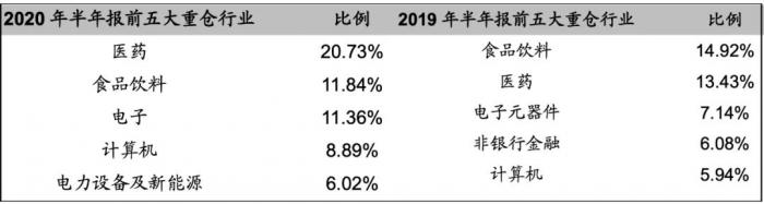 2020VS2019基金半年报:医药、科技占比不断提升